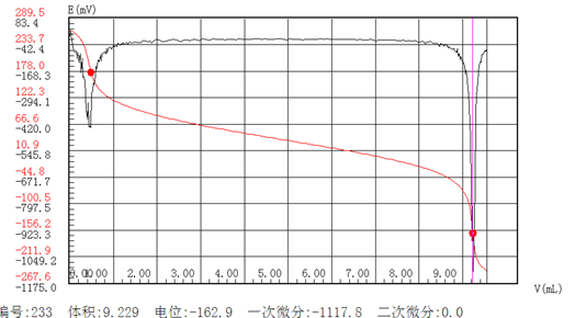 突躍量的選擇:經(jīng)過試驗,發(fā)現(xiàn)鹽酸金剛烷胺滴定時溶液第二終點電位突躍不很明顯,故選擇突躍量時應(yīng)特別注意。(建議**終點突躍量:500 第二終點突躍量:150。)
